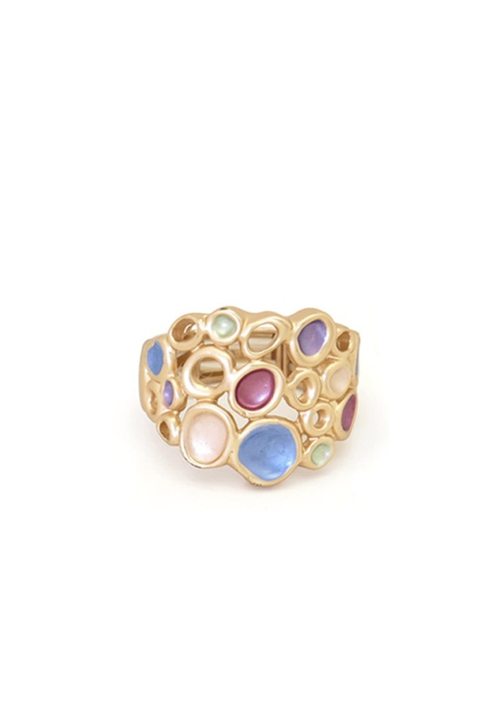 Anillo de la colección Vinyet con acabo dorado. Colores tipo esmalte en cada círculo.
