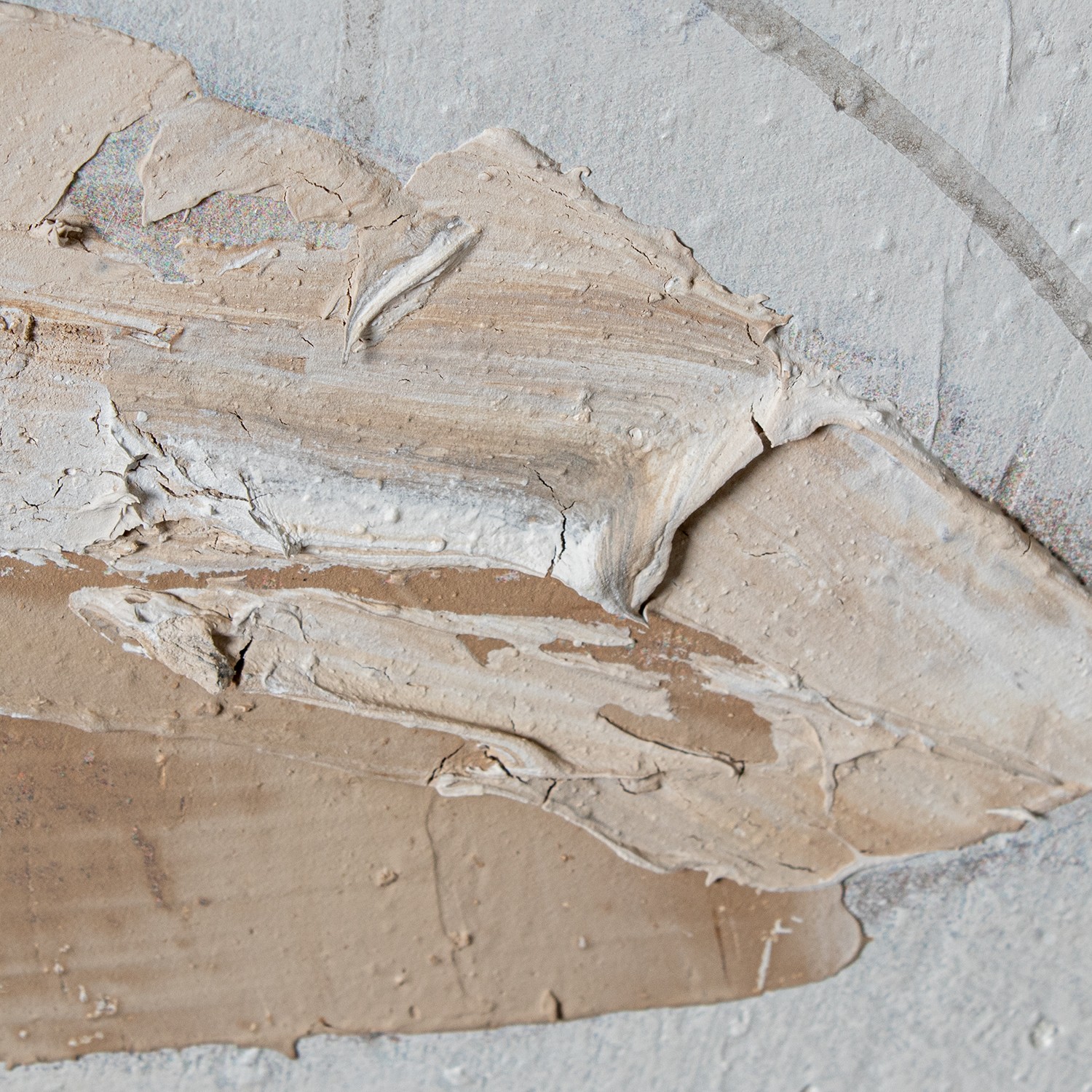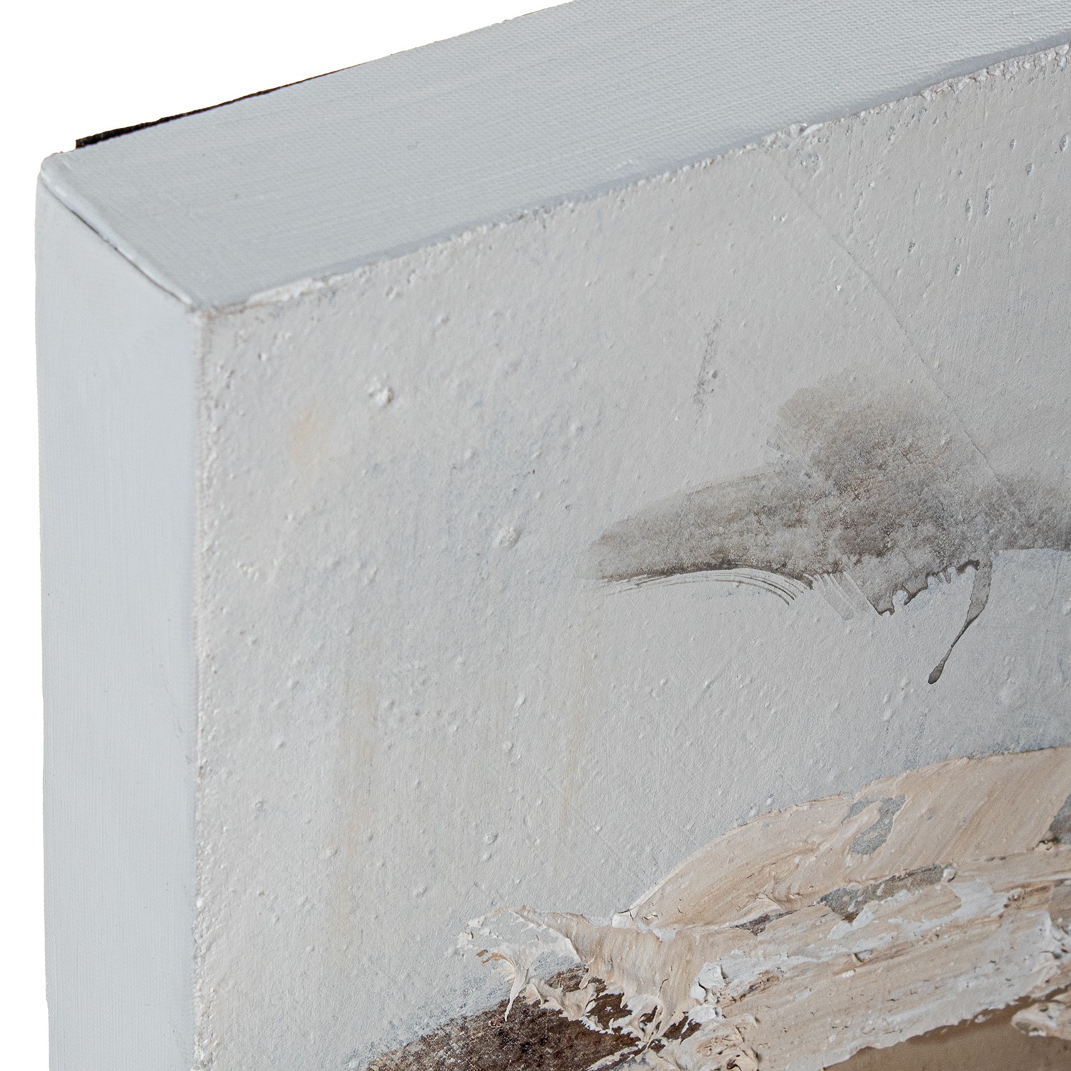 Cuadro con composición de hojas, ramas y flor sobre lienzo. Pintura de técnica mixta con relieve y bastante plasticidad.