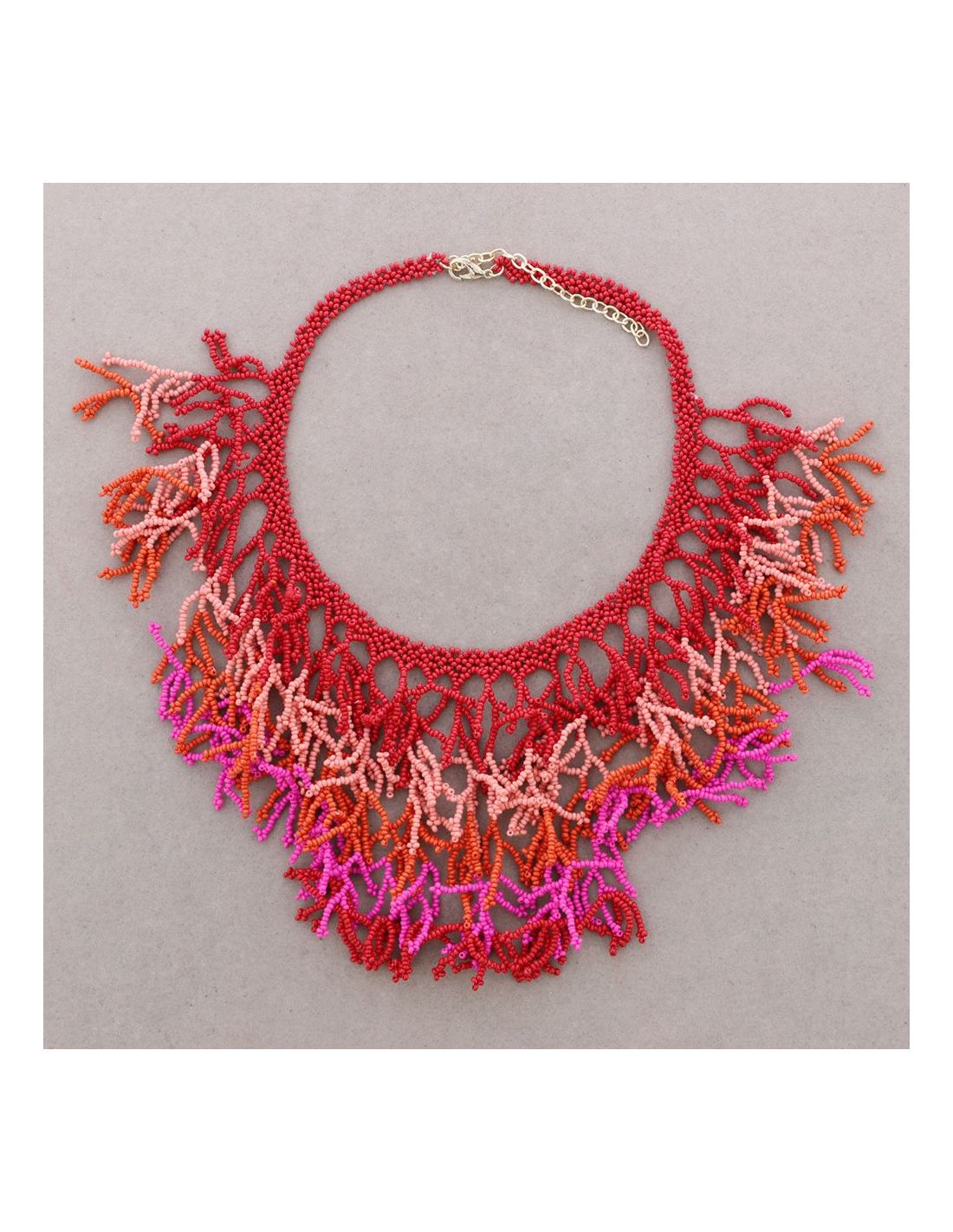 Gargantilla realizada a mano con abalorios tricolor y formando «algas» tipo babero. Muy ligero e hipoalergénico,