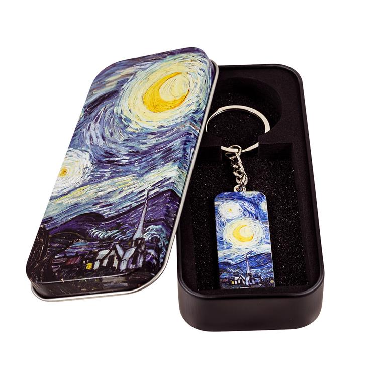 Llavero metálico con acabado esmaltado e inspirado en pinturas famosas. Incluye una lata a juego con la pintura. Poco pesado