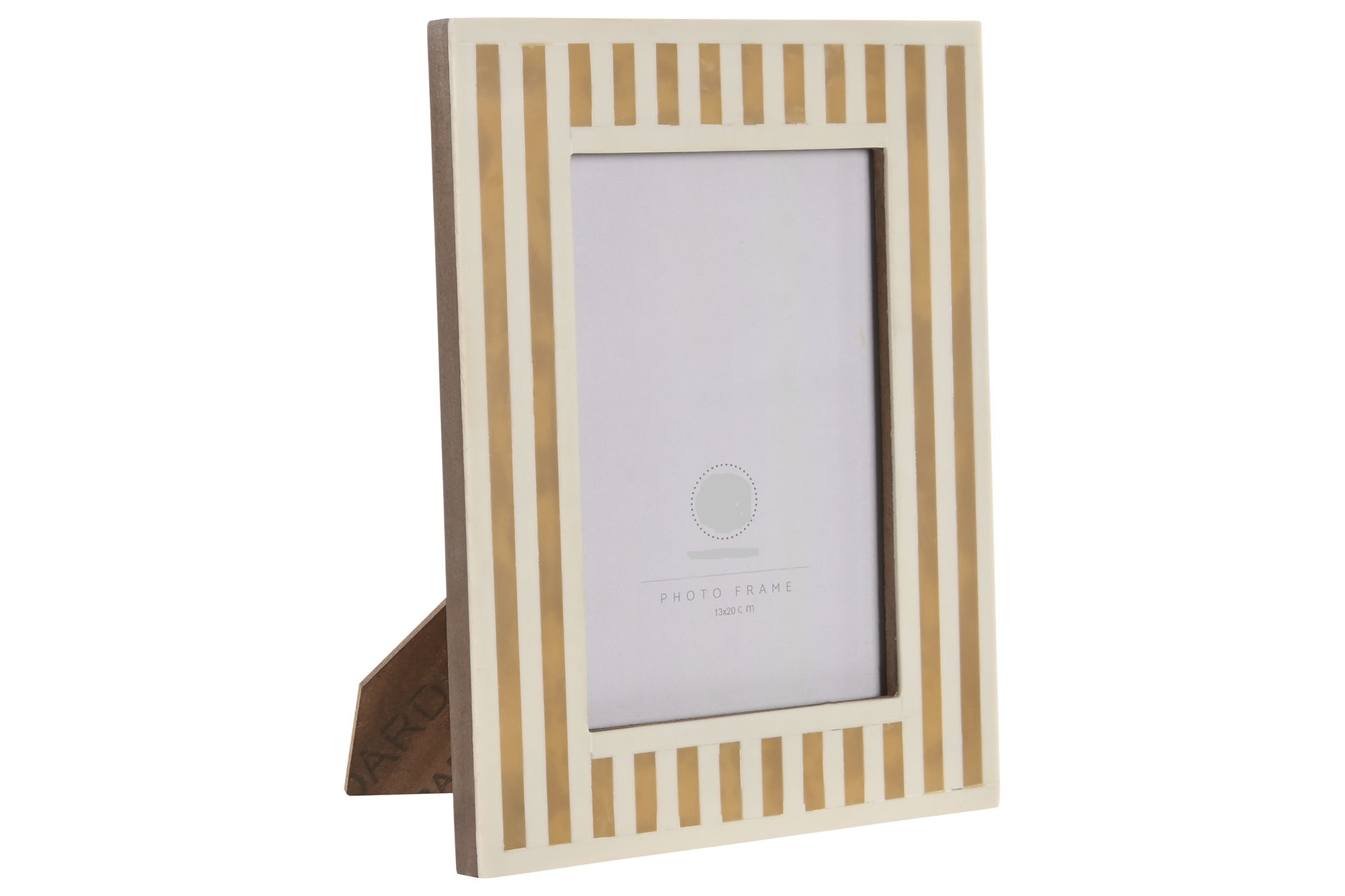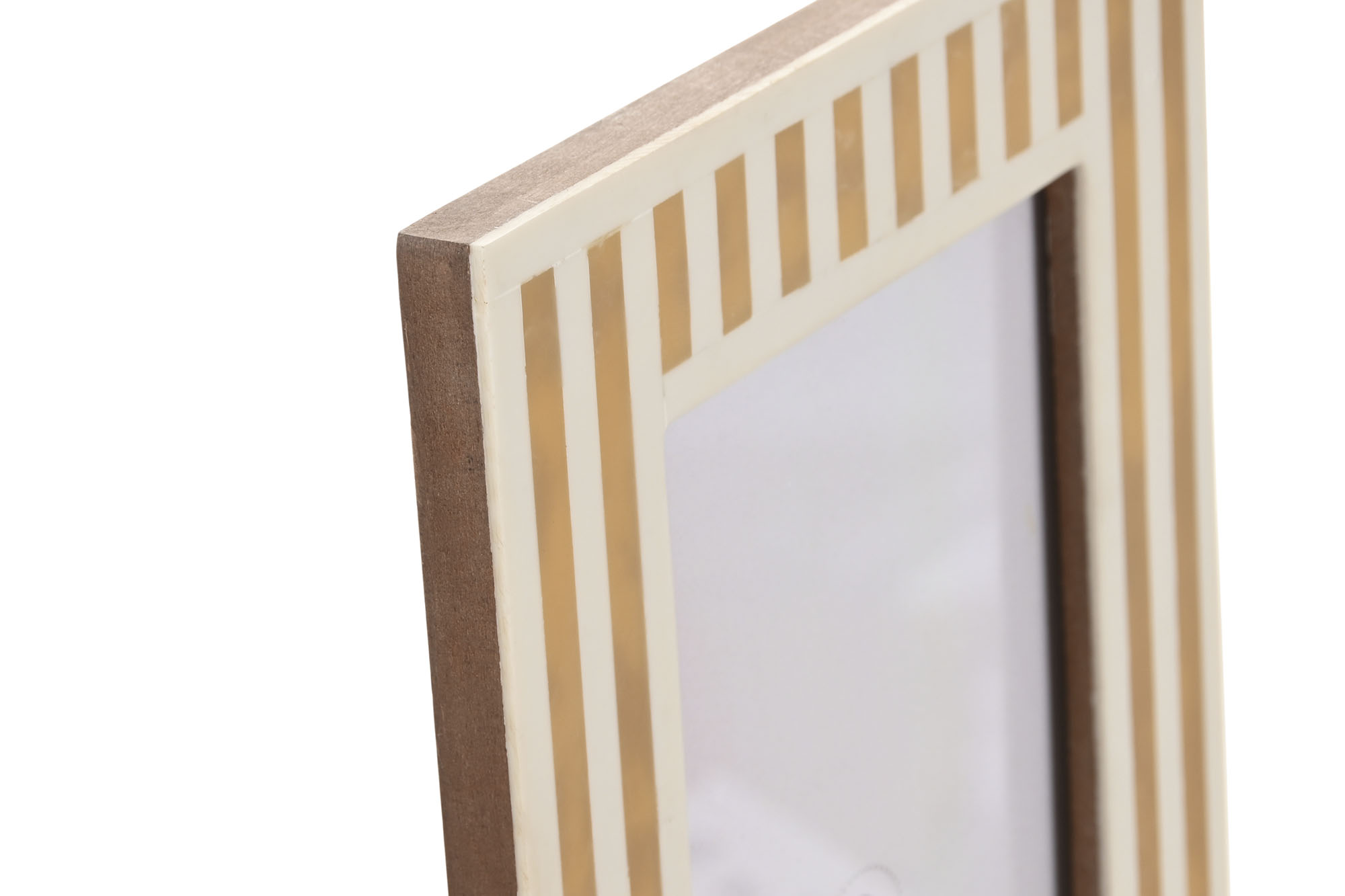 Marco para fotos con rayas paralelas y realizado en resina con hueso. Valido para fotos tanto vertical como en horizontal.